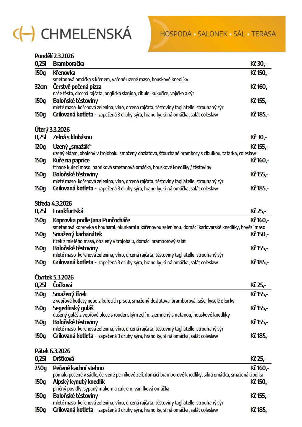 Polední menu na nový týden - od 2.3.2026