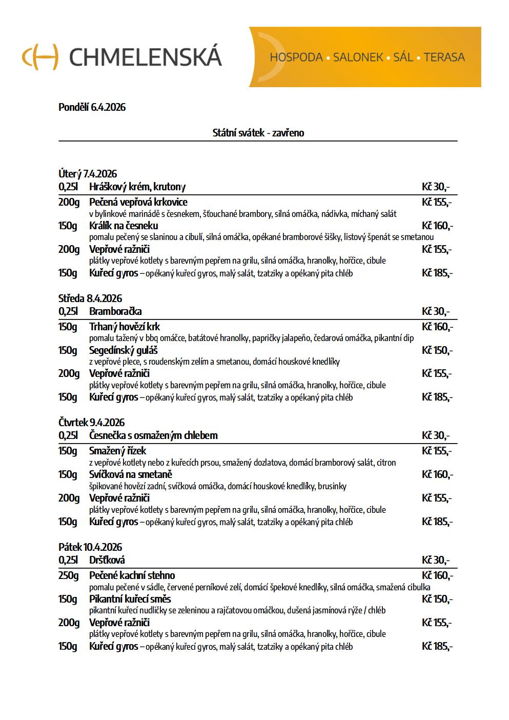 Polední menu v týdnu od 7.4.2026